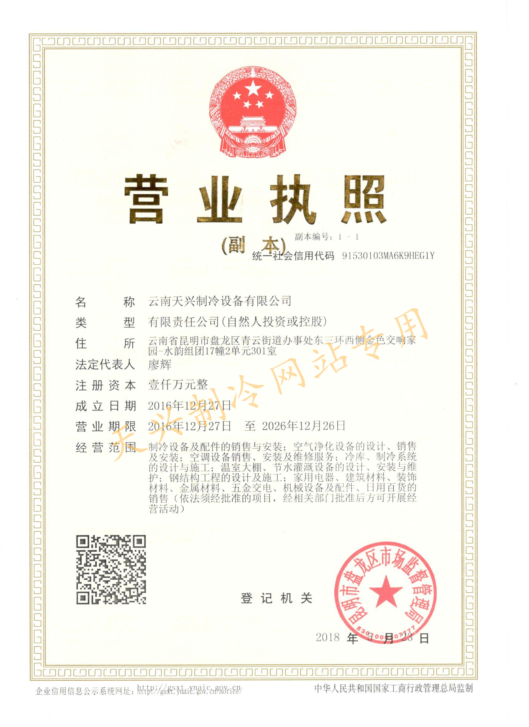 云南天興制冷設備有限公司位于云南省省會城市昆明,是一家專業(yè)從事冷庫設計、生產(chǎn)、安裝及技術(shù)服務為一體的綜合型企業(yè)。公司秉承“品質(zhì)為本,信譽第一”的經(jīng)營理念,承建了一大批速凍庫、冷藏庫、保鮮庫、鹽水池、超市展示柜、凈化無菌間等高品質(zhì)工程。